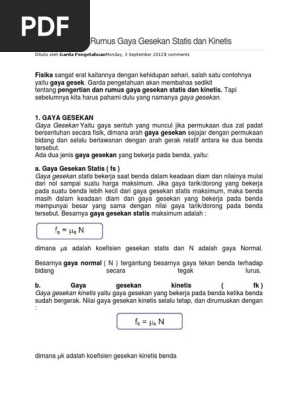 Contoh Gaya Gesek Pengertian Rumus Asal Jenis Manfaat