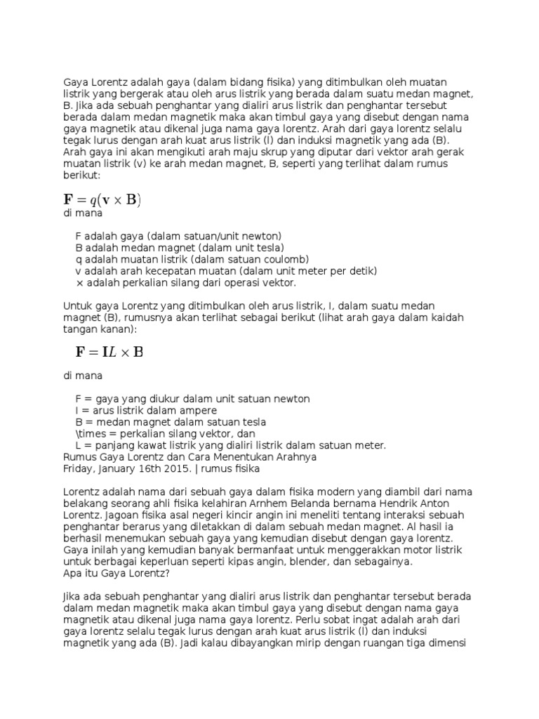 Contoh Gaya Lorentz Rumus Pengertian Menentukan Arah Faktor
