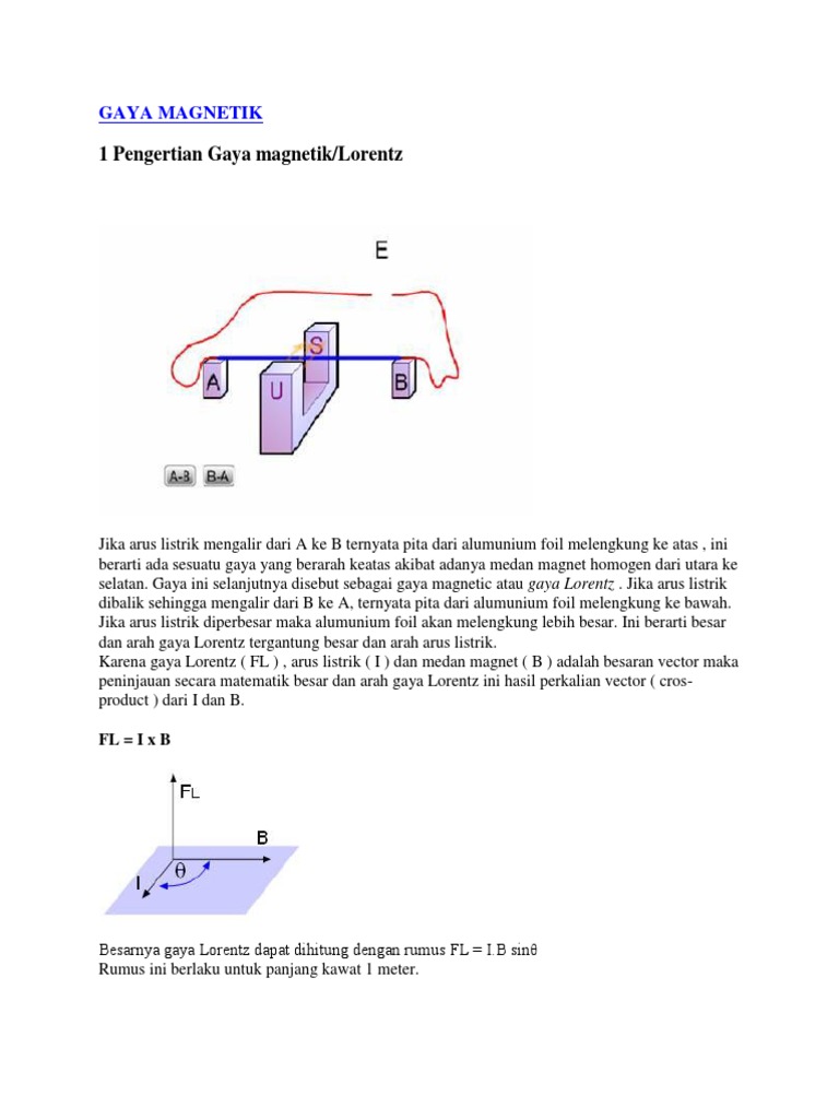 Pengertian Gaya Magnetik Gaya Lorentz Contoh Soal Rumus Praktikum Jawaban Penghantar Arus Listrik Medan Magnet Garis Lurus Spiral Sejajar Lingkaran Fisika