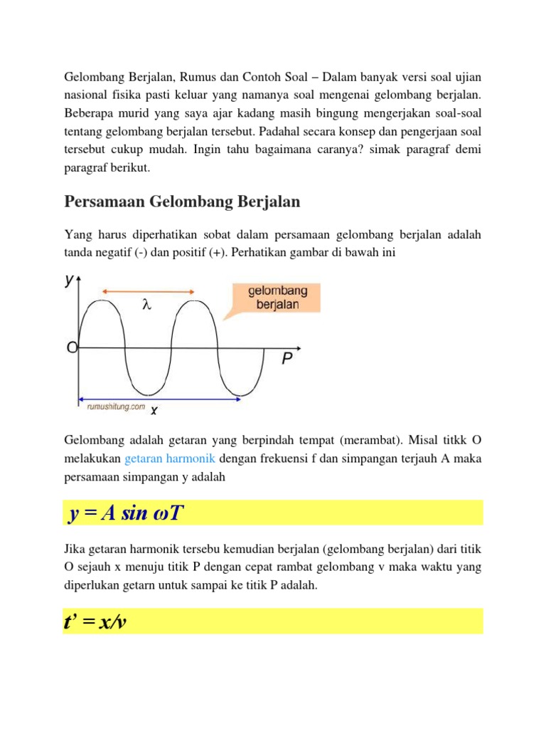 Ilmu Pengetahuan 2 Contoh Soal Fisika Gelombang Berjalan