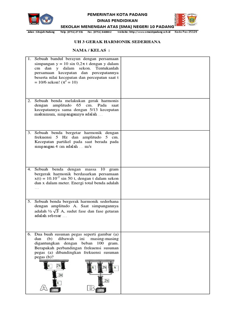 10 Soal Getaran Harmonik Gerak Harmonis Sederhana Pembahasan