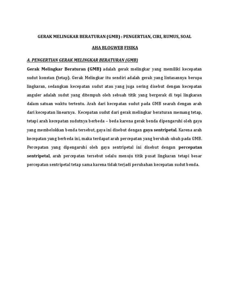 Pengertian Gerak Melingkar Beraturan Ciri Ciri Rumus Variabel Gmb Ilmupelajaran Com