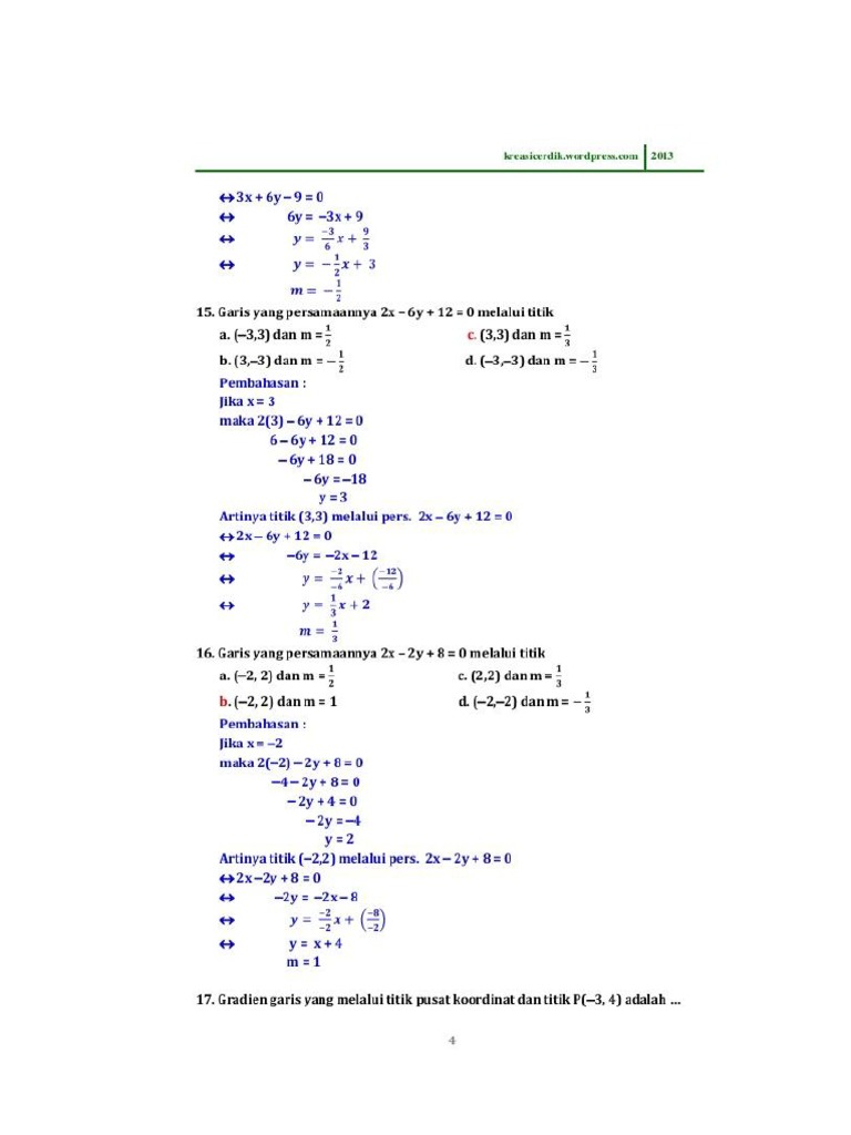 Pelajaran Soal Rumus Persamaan Garis Melalui Satu Titik Bergradien Wardaya College