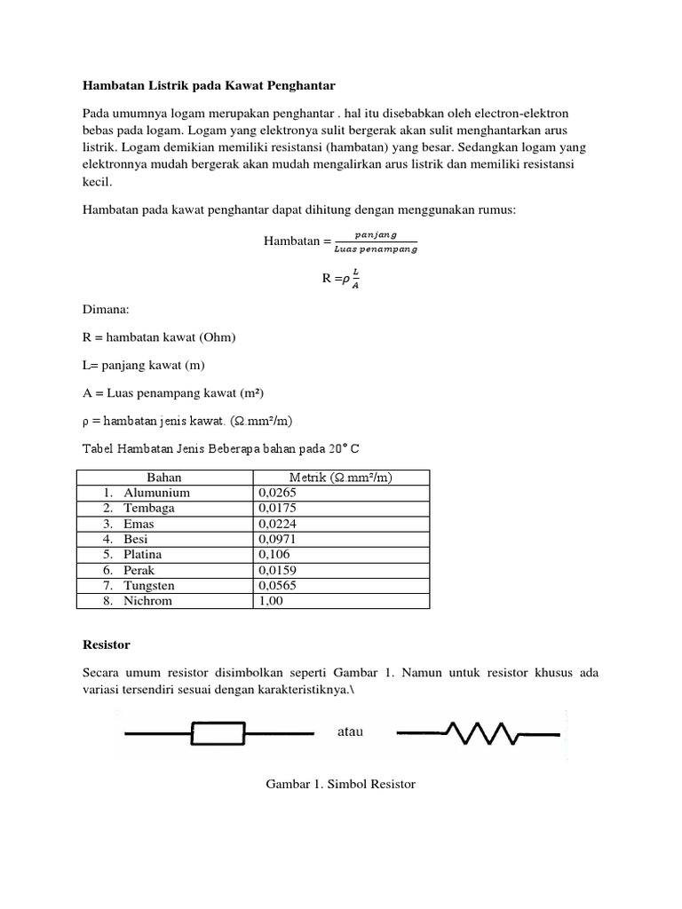 Luas Penampung Sebuah Kawat Penghantar Adalah 0 25 Mm Apabila Hambatan Dan Hambata Jenis Kawat Brainly Co Id