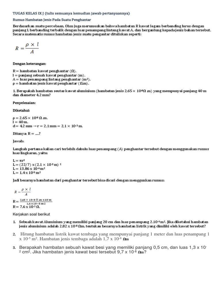 Pengertian Dan Cara Menghitung Hambatan Jenis Suatu Penghantar Beserta Contoh Soal Terlengkap Pelajaran Sekolah Online