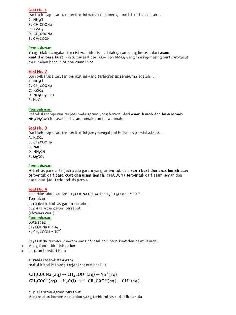 Hidrolisis Garam Pengertian Macam Rumus Dan Contoh Soal