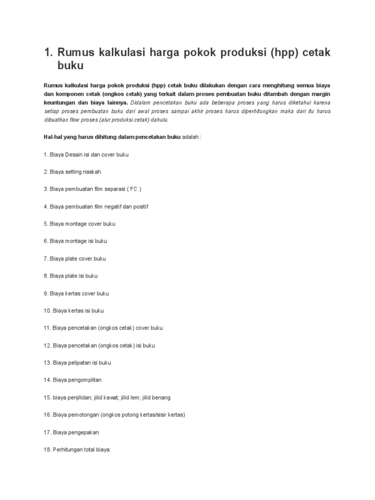 Manfaat Informasi Harga Pokok Produksi Per Pesanan Lengkap