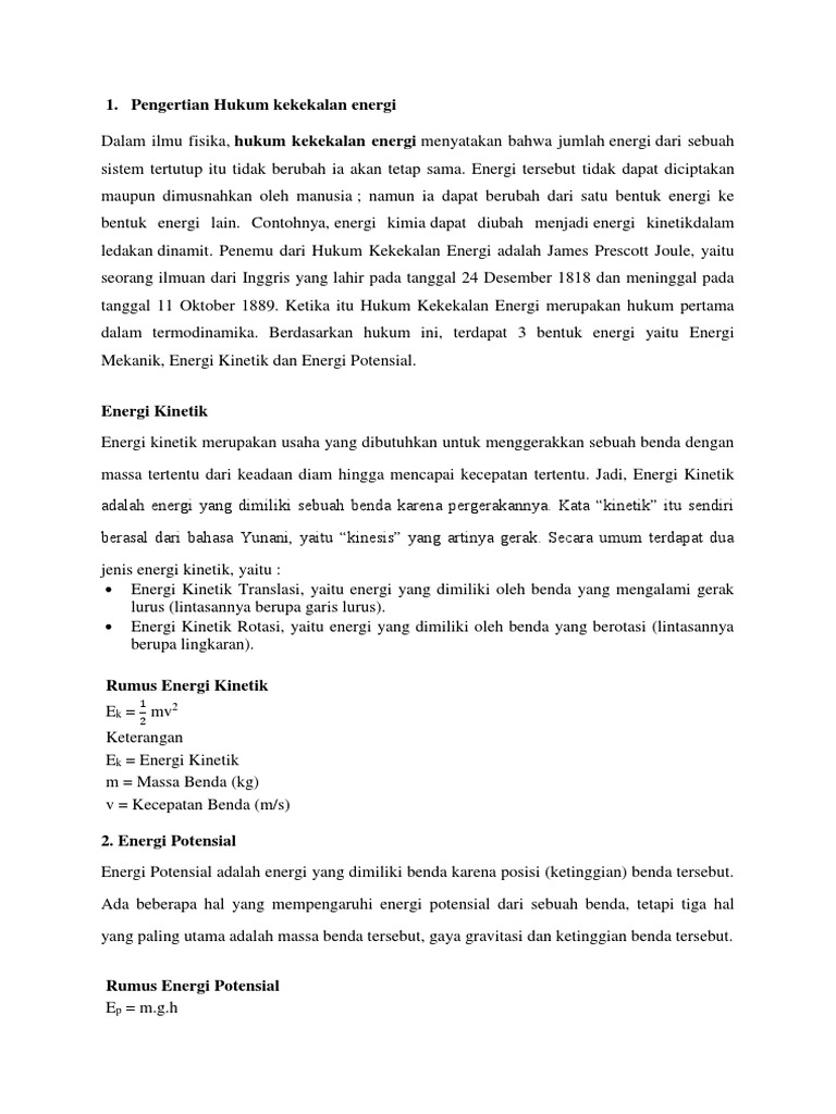Hukum Kekekalan Energi Docx Bunyi Hukum Kekekalan Energi Hukum Kekekalan Energi Menyatakan Bahwa Energi Tidak Dapat Diciptakan Dan Dimusnahkan Tetapi Course Hero