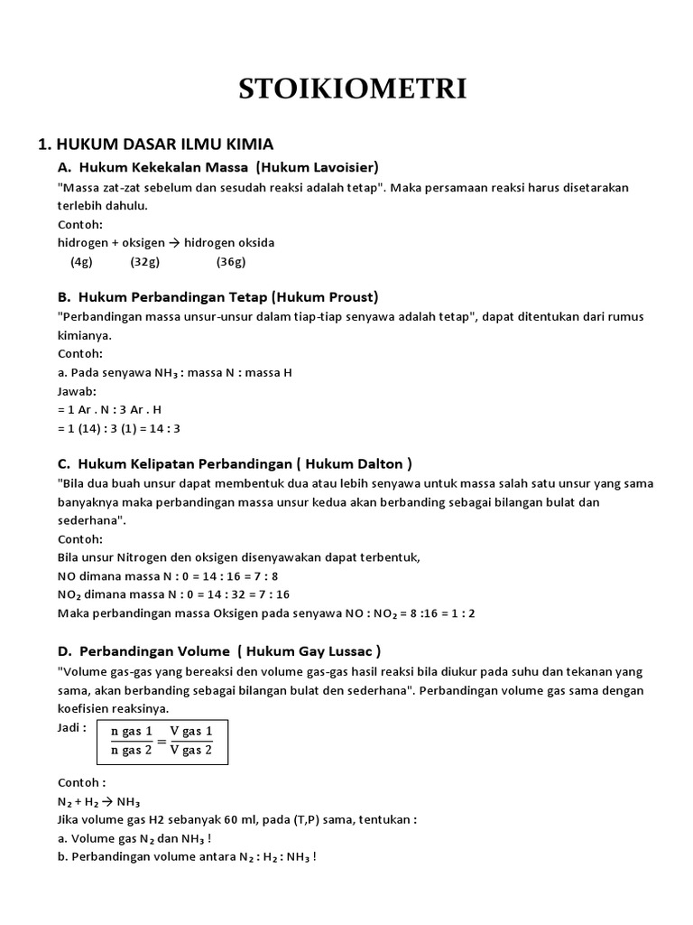 Belajar Pengertian Stoikiometri Hukum Kekekalan Masa Lavoisier Hukum Perbandingan Tetap Proust Hukum Kelipatan Perbandingan Dalton Hukum Perbandingan Volume Gay Lussac Teori Avogadro Dan Konsep Mol Contoh Soal Dan Jawabnya Sekolah