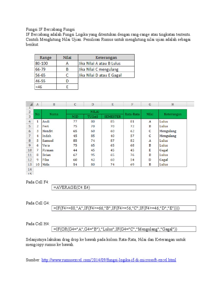 Rumus If Bertingkat Di Ms Excel 2007 2013 2016 Untuk 3 4 5 6 Kondisi Dan Contoh Kasus Soal Panduan Ms Office