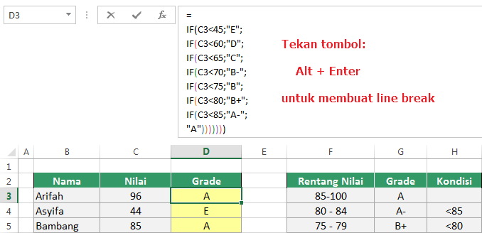 Rumus If Bertingkat Di Ms Excel 2007 2013 2016 Untuk 3 4 5 6 Kondisi Dan Contoh Kasus Soal Panduan Ms Office