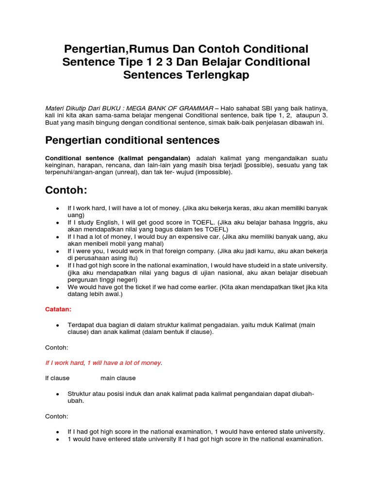 Pengertian Rumus Dan Contoh Conditional Sentence Tipe 1 2 3 Terlengkap