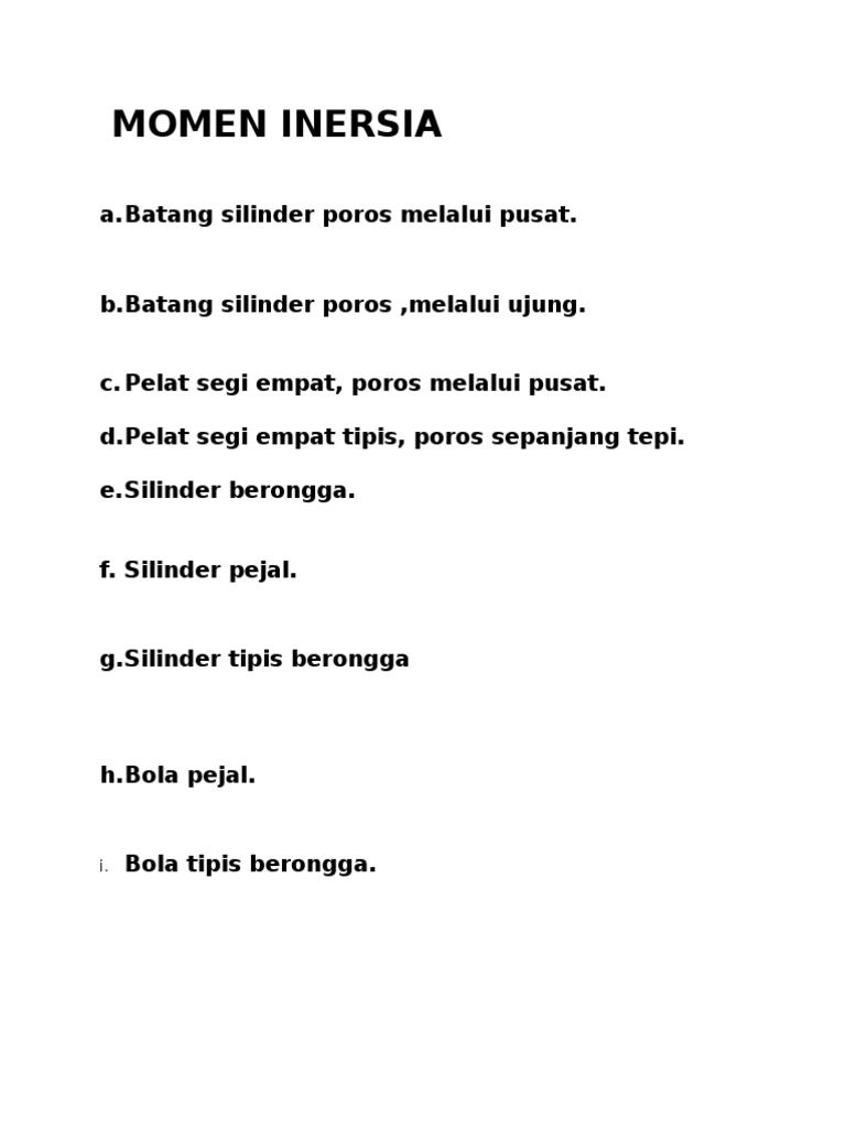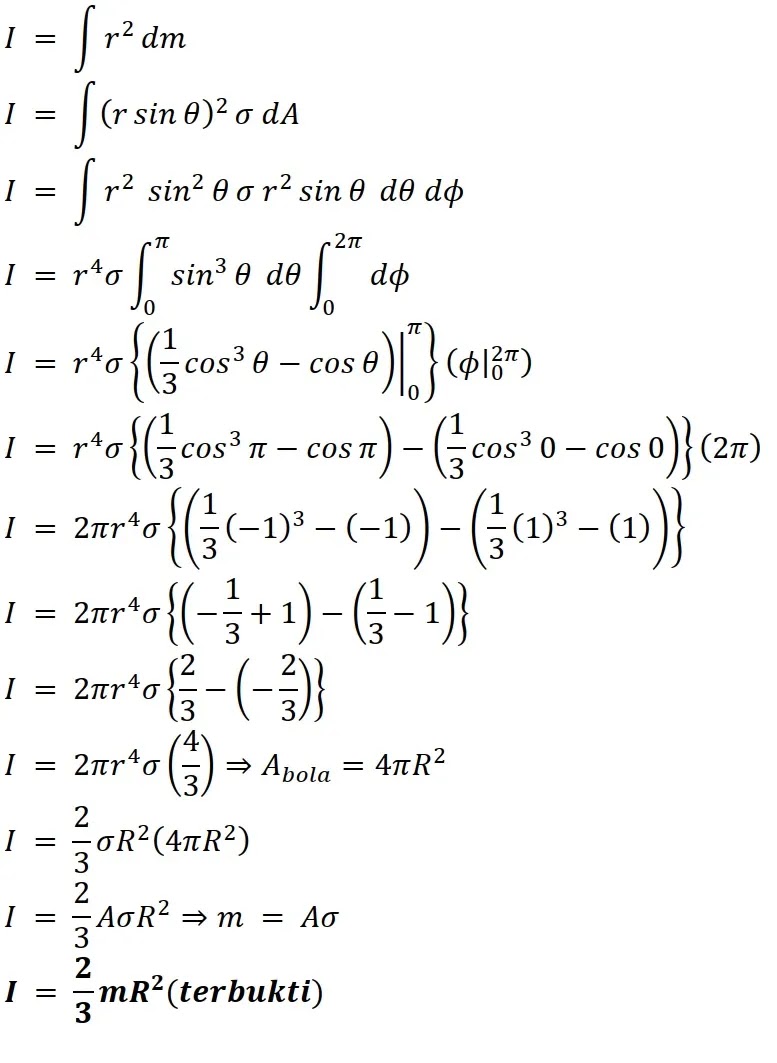 Benda berbentuk bola juga dibagi atas benda bola pejal dan berongga. Kg m 2 adalah ukuran kelembaman suatu benda untuk berotasi terhadap porosnya. Untuk menyederhanakan perhitungannya maka momen inersia tiap geometri benda dihitung terpisah.