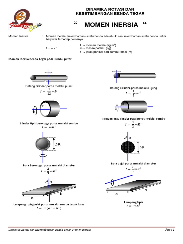 Pdf Penentuan Momen Inersia Benda Silinder Pejal Dengan Integral Dan Tracker