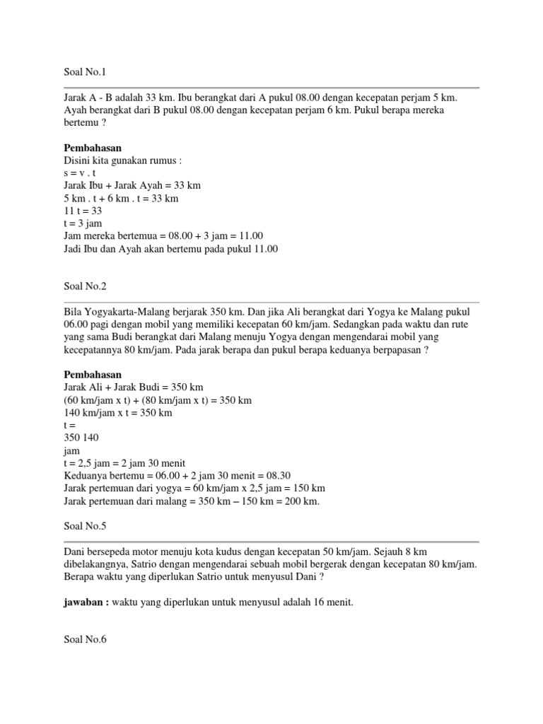 Soal Dan Pembahasan Terlengkap Kecepatan Jarak Dan Waktu Mathcyber1997