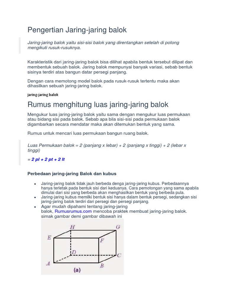 Cara Mencari Luas Permukaan Dan Jaring Jaring Balok Youtube