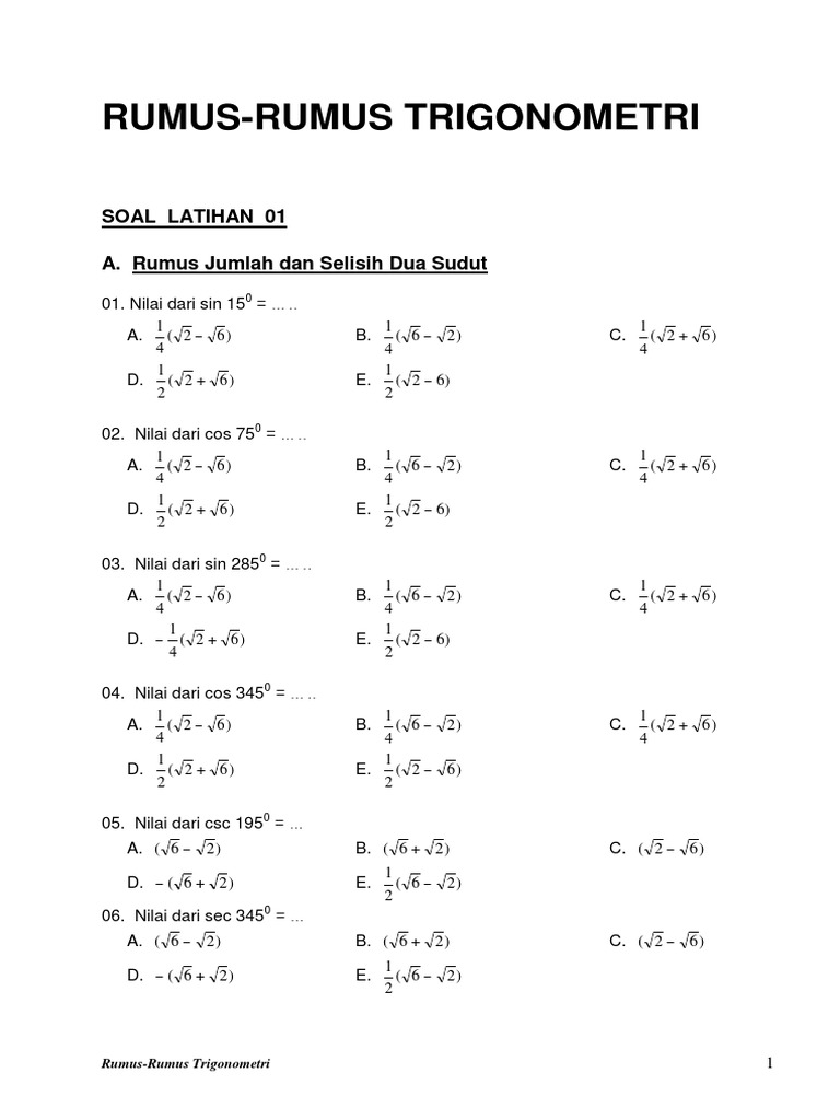 Menentukan Nilai Dengan Menggunakan Rumus Trigonometri Jumlah Dan Selisih Dua Sudut Youtube