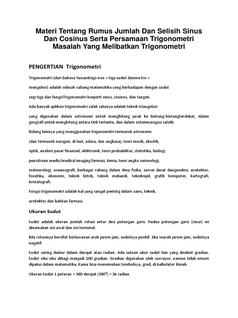 Rumus Jumlah Dan Selisih Fungsi Trigonometri Pdf Maths Id Rumus Jumlah Dan Selisih Fungsi Trigonometri Sinus Dan Cosinus Kontak Perihal Sitemap Forum Course Hero
