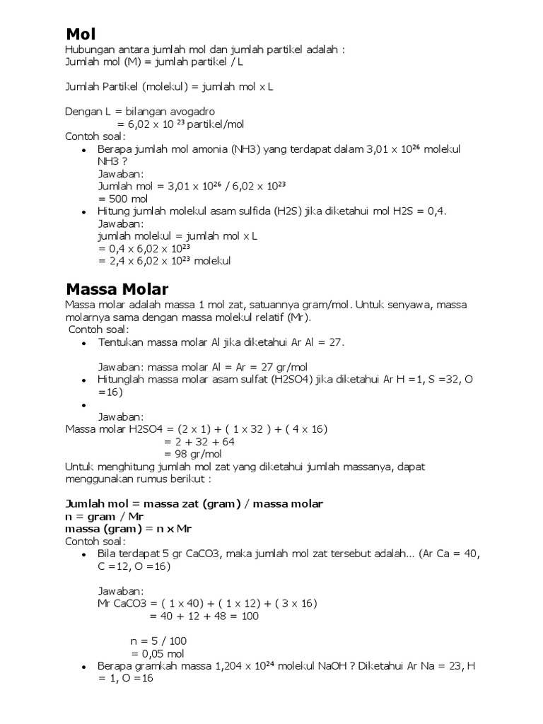 Hubungan Mol Dengan Jumlah Partikel Massa Volume Gas Dan Molaritas Larutan Contoh Soal Pembahasan Bagian 1 Blog Kimia