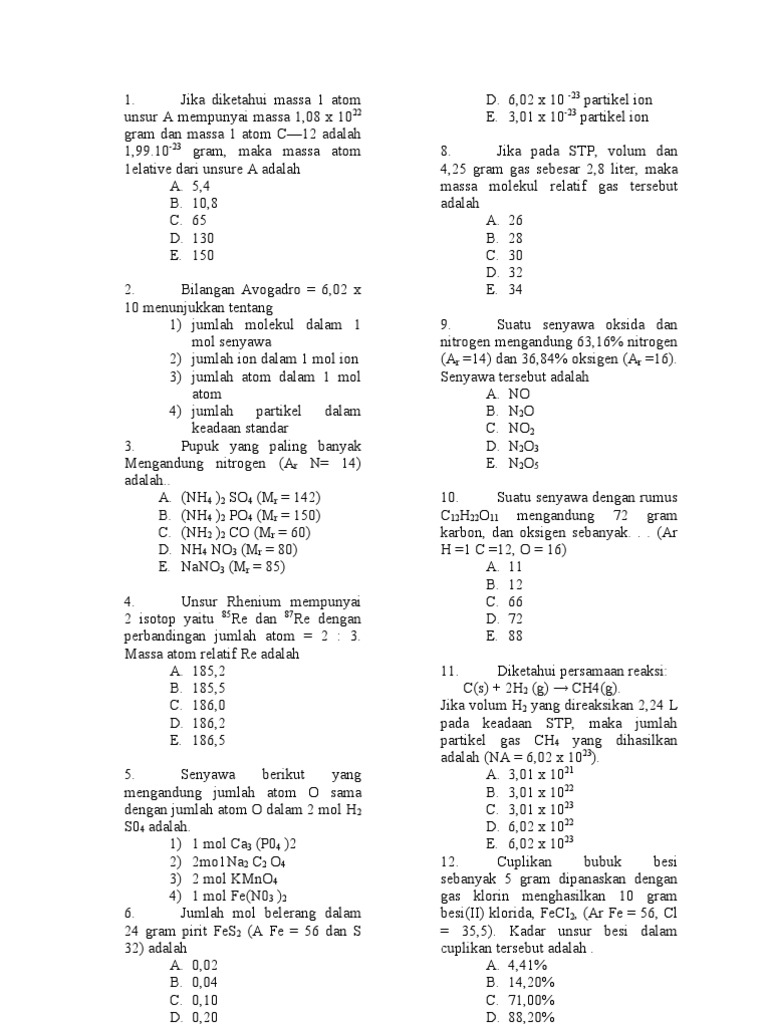 Kepo Massa Atom Relatif Jumlah Partikel Dan Mol