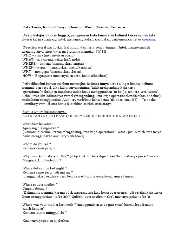 Contoh Kalimat Simple Past Tense Positif Negatif Dan Tanya