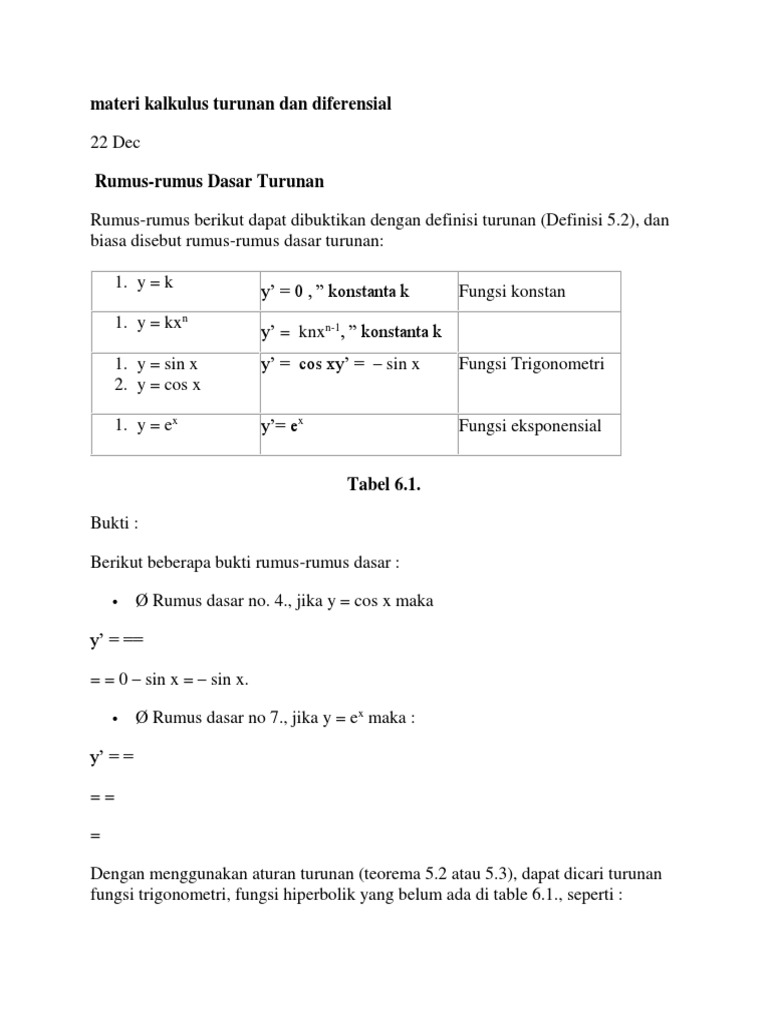 Rumus Turunan Diferensial Tabel Turunan Kalkulus Soal Dan Jawaban