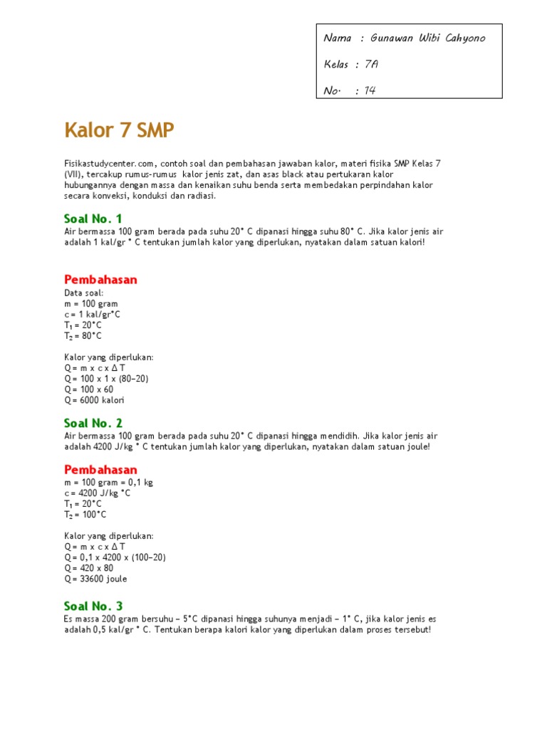 Fisika Docx Kalor 7 Smp Fisikastudycenter Com Contoh Soal Dan Pembahasan Jawaban Kalor Materi Fisika Smp Kelas 7 Vii Tercakup Rumus Rumus Kalor Jenis Course Hero