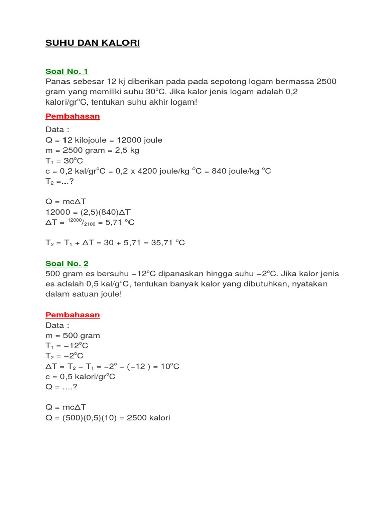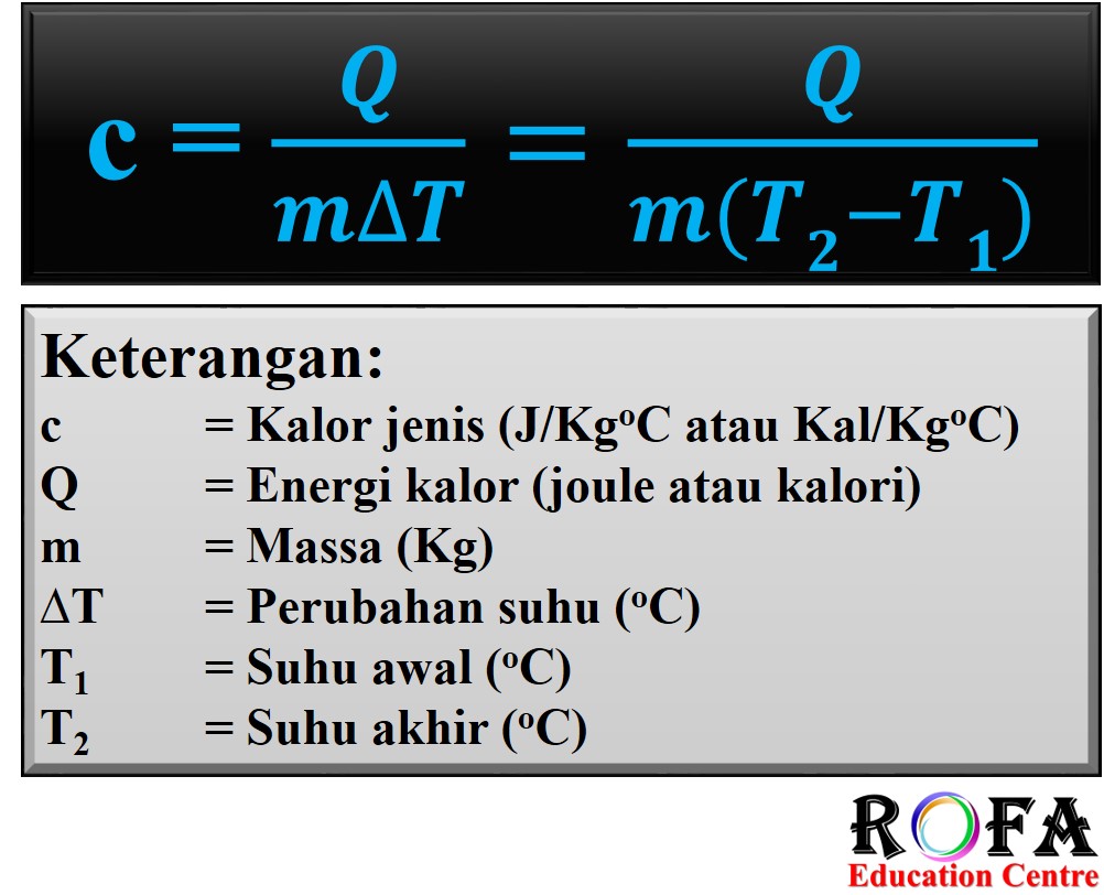 Rumuscoid setelah sebelumnya kita membahas tentang rumus tekanan hidrostatis kali ini kita akan membahas materi tentang rumus kalor jenis kita akan jabarkan secara detail mulai dari pengertian rumus satuan dan contoh soal kalor jenis beserta pembahasannya. Dengan menggunakan asas black kita dapat menentukan kalor jenis suatu zat pada kalorimeter dengan menggunakan persamaan berikut. Sejumlah kalor yang diberikan suatu benda tidak semuanya mengalami kenaikan suhu artinya masih bisa mengalami penurunan suhu.