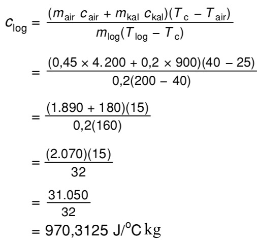Rumus kalor jenis logam. Pengukuran kalor jenis suatu benda misalnya logam dilakukan dengan memasukkan logam panas ke dalam kalorimeter berisi air dingin. Perubahan suhu pada bahan bahan yang memiliki kalor jenis rendah lebih besar daripada bahan lainnya jika hal hal yang lainnya sama besar. Contoh soal tentang menghitung kalor.