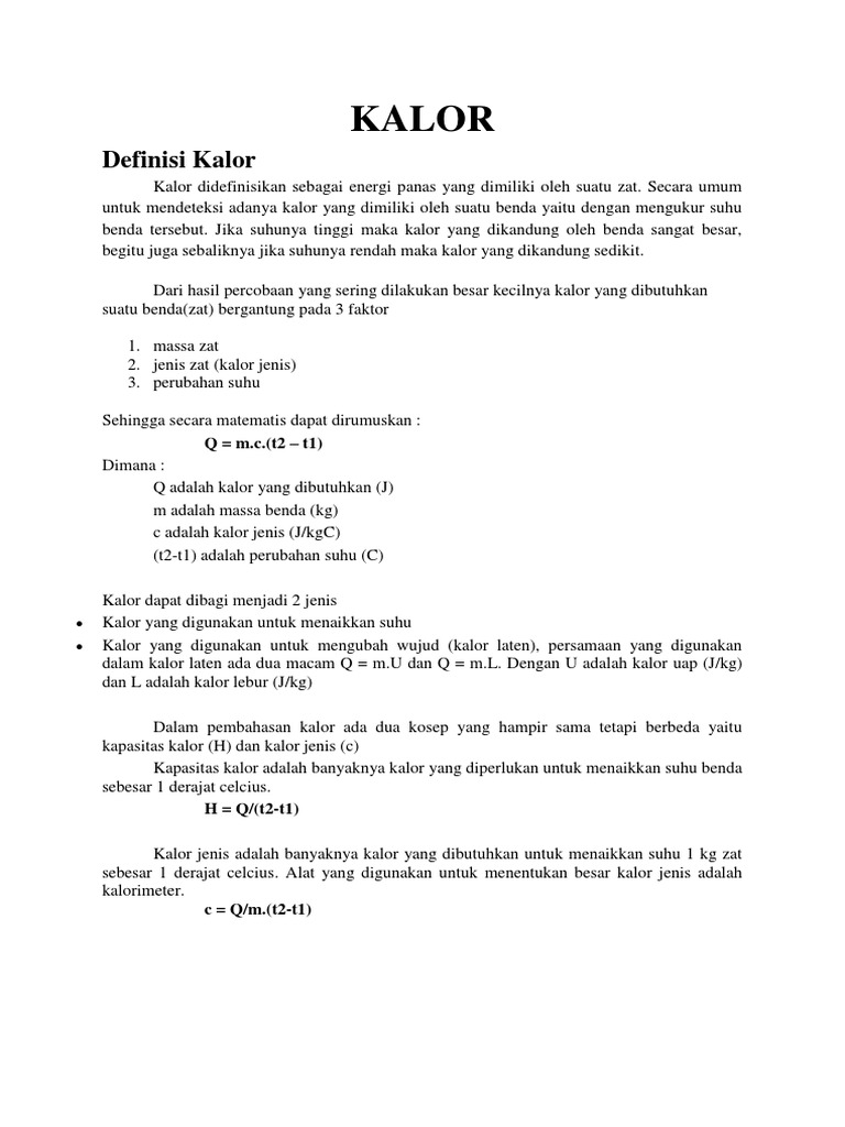 Pengertian Rumus Kalor Lengkap Dengan Contoh Soalnya
