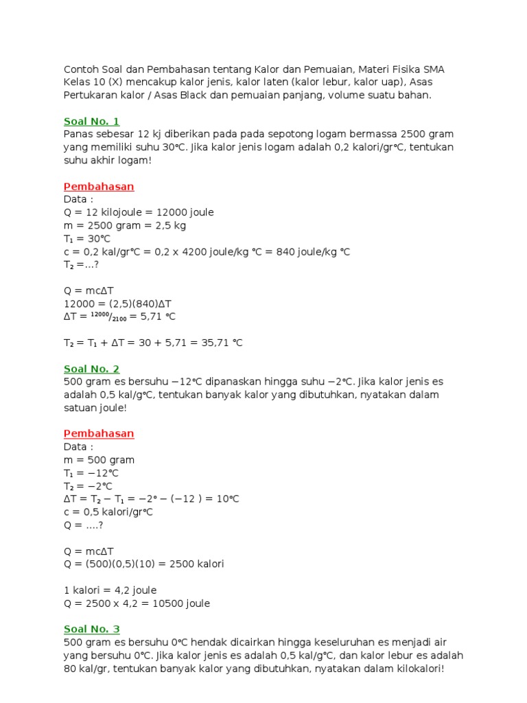 Kalor Jenis Es 2 100 J Kg C Kalor Lebur Es 336 000 J Kg Dan Kalor Jenis Air Adalah 4 200 J Kg C Brainly Co Id