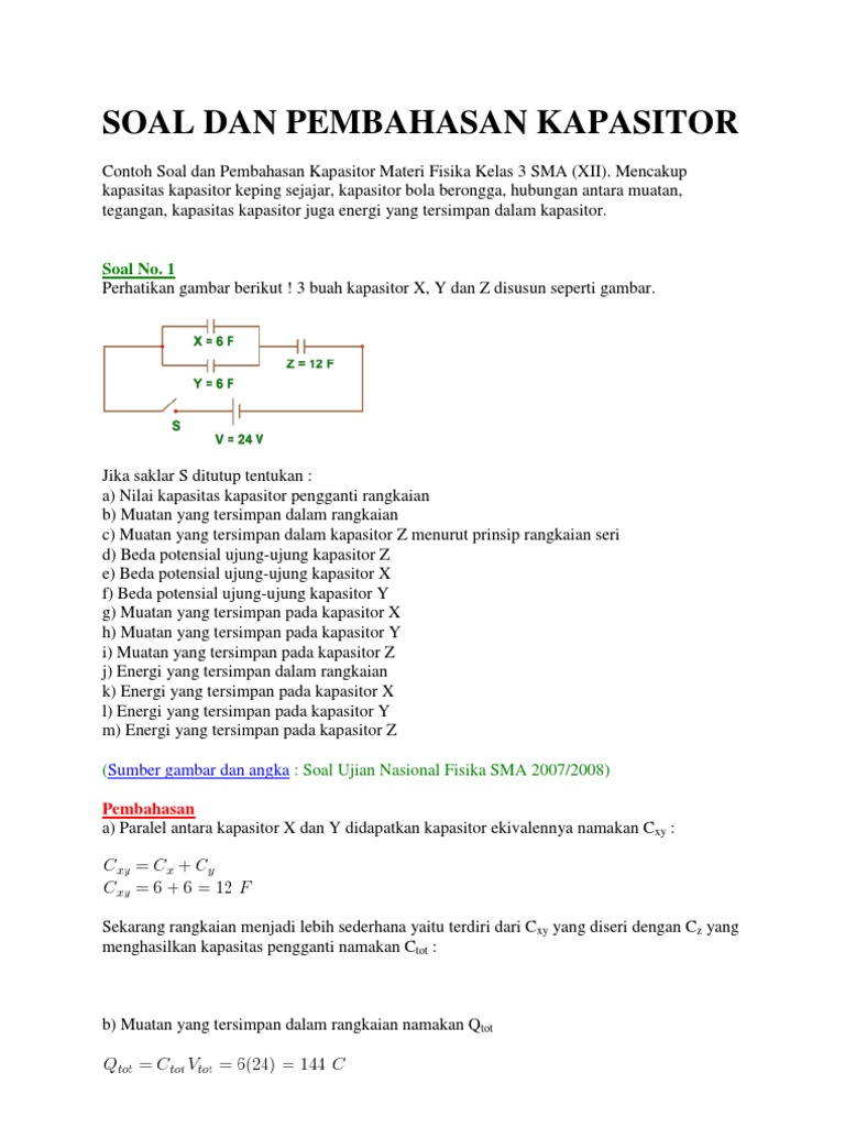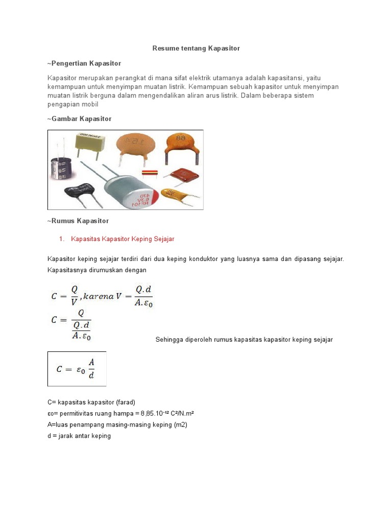 Pengertian Dan Fungsi Kapasitor Kondensator Jenis Jenis Polar Non Polar Kapasitas Keping Sejajar Bola Konduktor Rangkaian Seri Paralel Energi Rumus Fisika Contoh Soal Jawaban