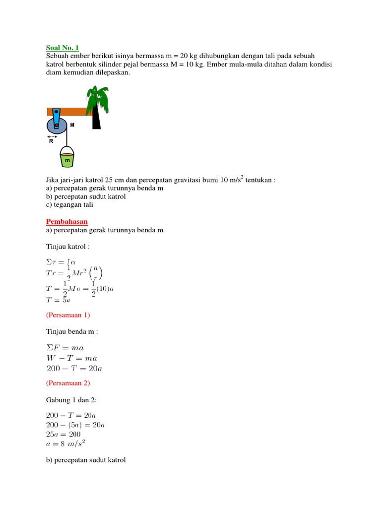 Ada Sebuah Sistem Katrol Katrol Tersebut Berupa Silinder Pejal Homogen Yang Dapat Berotasi Tanpa Brainly Co Id