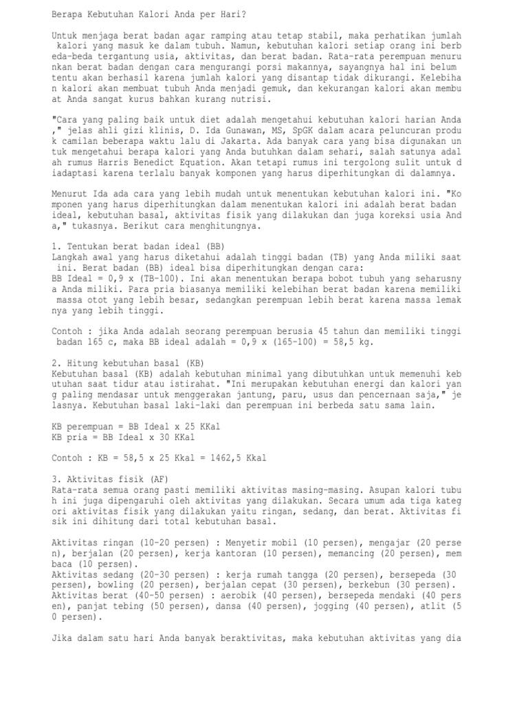 Bagaimana Cara Menghitung Kebutuhan Kalori Per Hari Dan Manfaatnya Official Website Initu Id