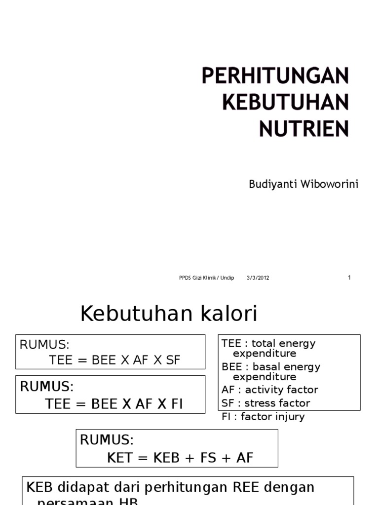 Rumus kebutuhan kalori. Menghitung kebutuhan kalori harian berdasarkan rumus world health organization who rumus menghitung kebutuhan kalori harian ini lebih sederhana dibanding rumus sebelumnya karena tidak memperhitungkan tinggi badan. Salah satu cara mengontrol kalori yang masuk ke dalam tubuh adalah dengan mengetahui terlebih dahulu jumlah kebutuhan kalori harian anda. Orang dengan kegiatan yang jarang bergerak tentu membutuhkan kalori lebih sedikit dibanding orang dengan aktivitas gerak tubuh tinggi.