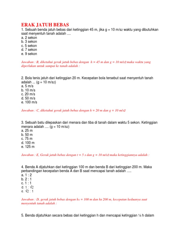 Benda Jatuh Dari Atas Gedung Tanpa Kecepatan Awal Jika Benda Menyentuh Tanah 3 Sekon Berapakah Ketinggian Gedungnya Soal Fisika