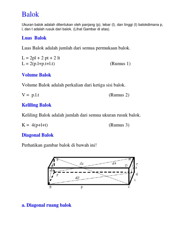 Rumus Volume Luas Dan Keliling Balok