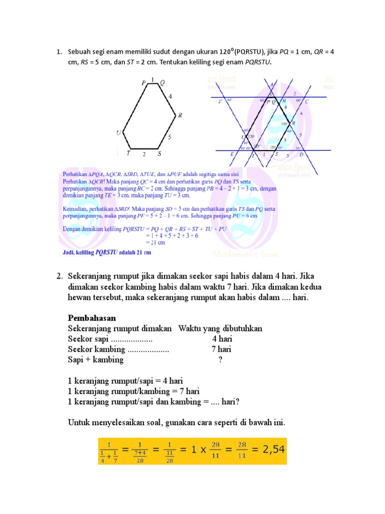 Keliling Suatu Segi Enam Beraturan Adalah 72 Cm Luas Segi 6 Tersebut Adalah Brainly Co Id