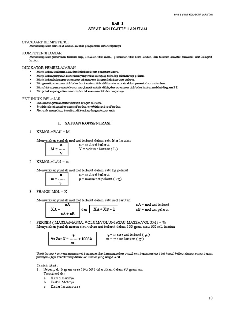 Konsentrasi Larutan Ii Bagian 1 0 Pdf X Kimia Konsentrasi Larutan Ii Tujuan Pembelajaran Setelah Mempelajari Materi Ini Kamu Diharapkan Memiliki Course Hero