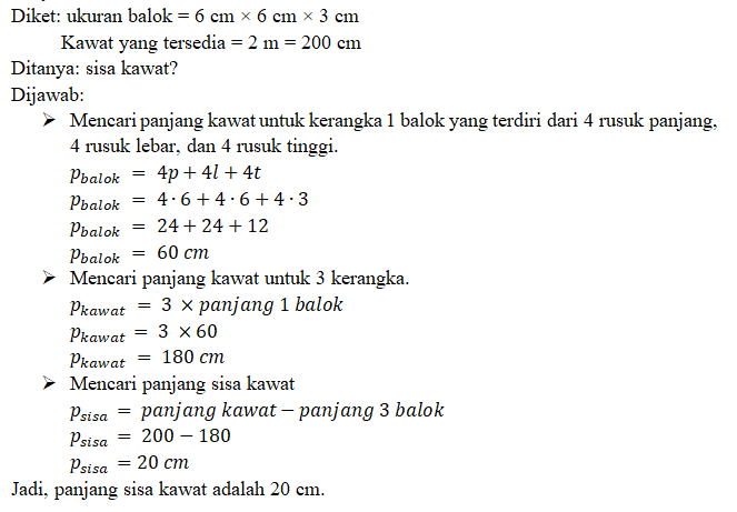 Panjang Kawat Dewi 1 8 M Ia Akan Membuat Kerangka Balok Yg Berukuran 12 X 8 X 6cm Berapa Sisanya Youtube