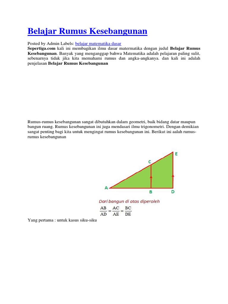 Rumus Cepat Matematika Smp Kesebangunan Dan Kongruensi Anak Kreatif Berprestasi Wa 0818 22 0898