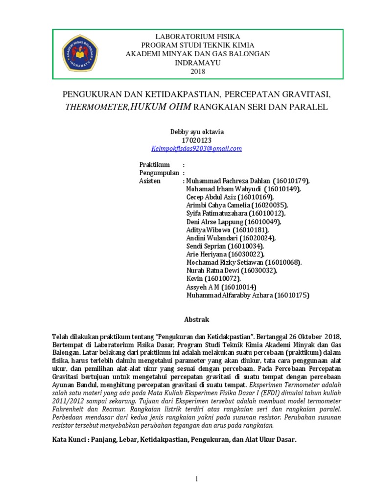 Ketidakpastian Dan Pengukuran Praktikum Fisika 2 Dengan Pengertian Ini Maka Dalam Mengukur Tegangan Sebuah Alat Ukur Dikatakan Presisi Precision Pdf Document