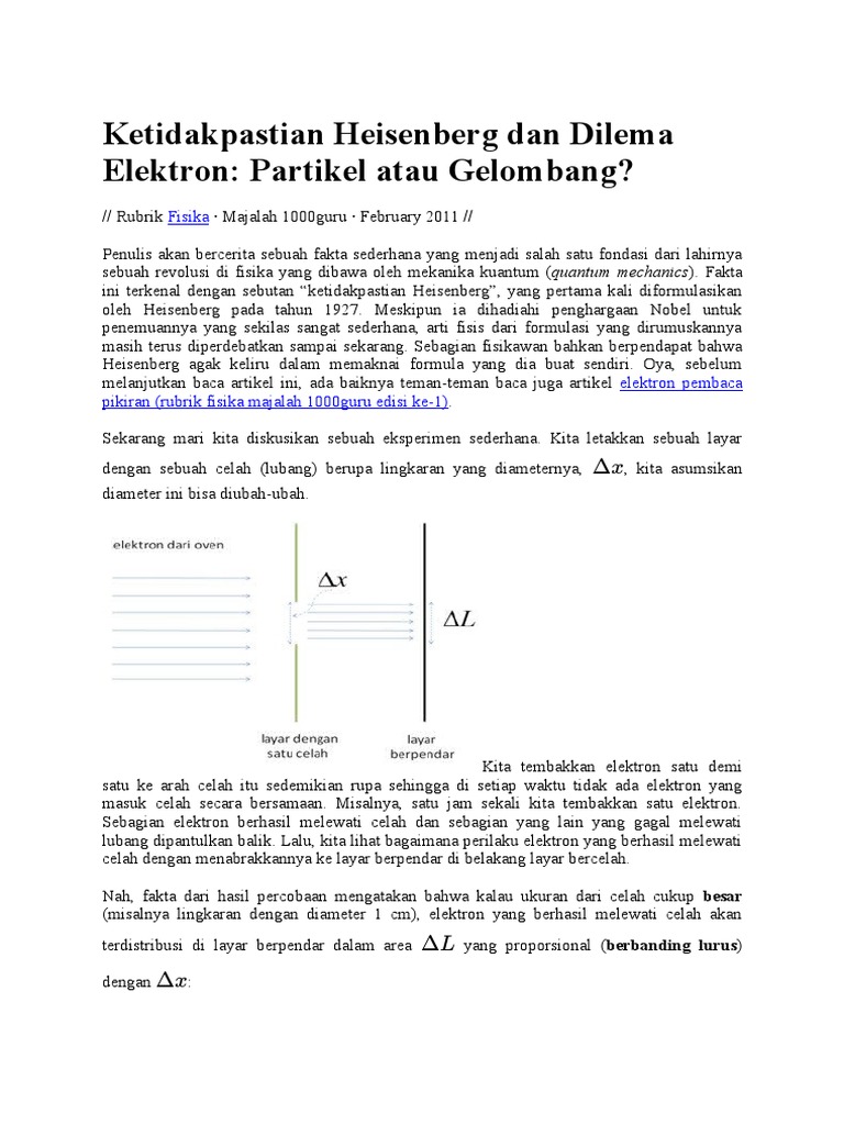 Tuliskan Ketidakpastian Heisenberg Untuk Posisi X Dan Momentum P Dinyatakan Dengan Konstanta Plank Brainly Co Id