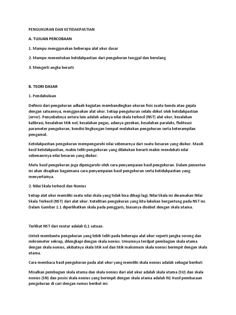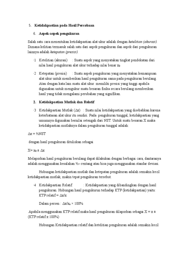 Ketidakpastian Dan Pengukuran Praktikum Fisika 2 Dengan Pengertian Ini Maka Dalam Mengukur Tegangan Sebuah Alat Ukur Dikatakan Presisi Precision Pdf Document