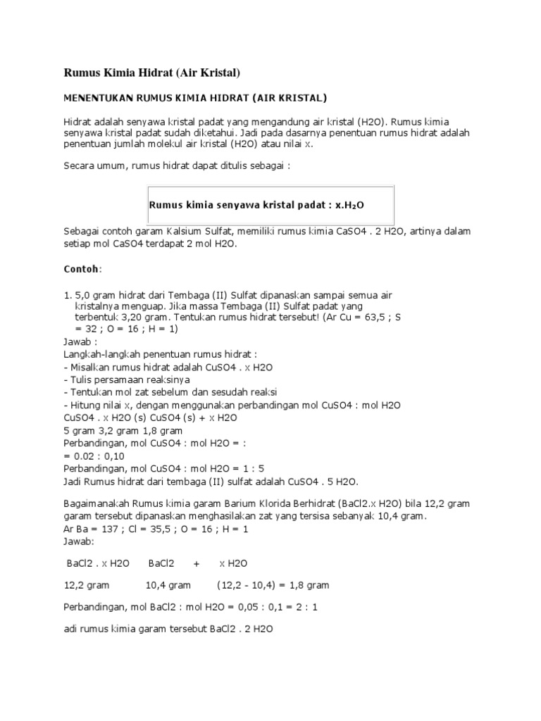 Contoh Soal Penentuan Rumus Kimia Empiris Molekul Hidrat Kadar Dalam Zat Dan Pereaksi Pembatas Senyawa Materiedukasi Com