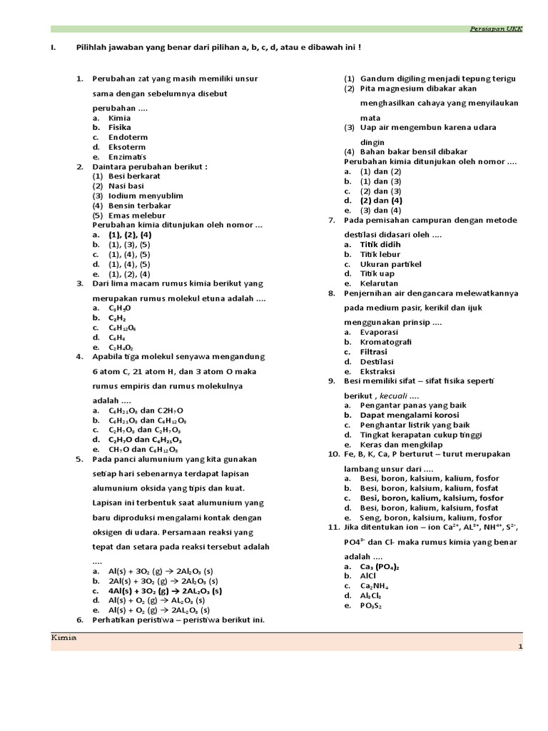 Pas Genap Kimia Kisi Kisi Kelas 10