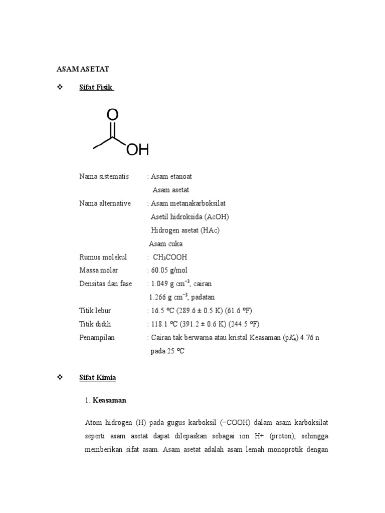 Pengertian Asam Asetat Rumus Sifat Dan Kegunaan Hisham Id