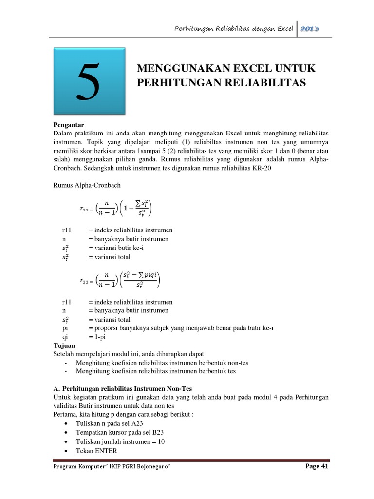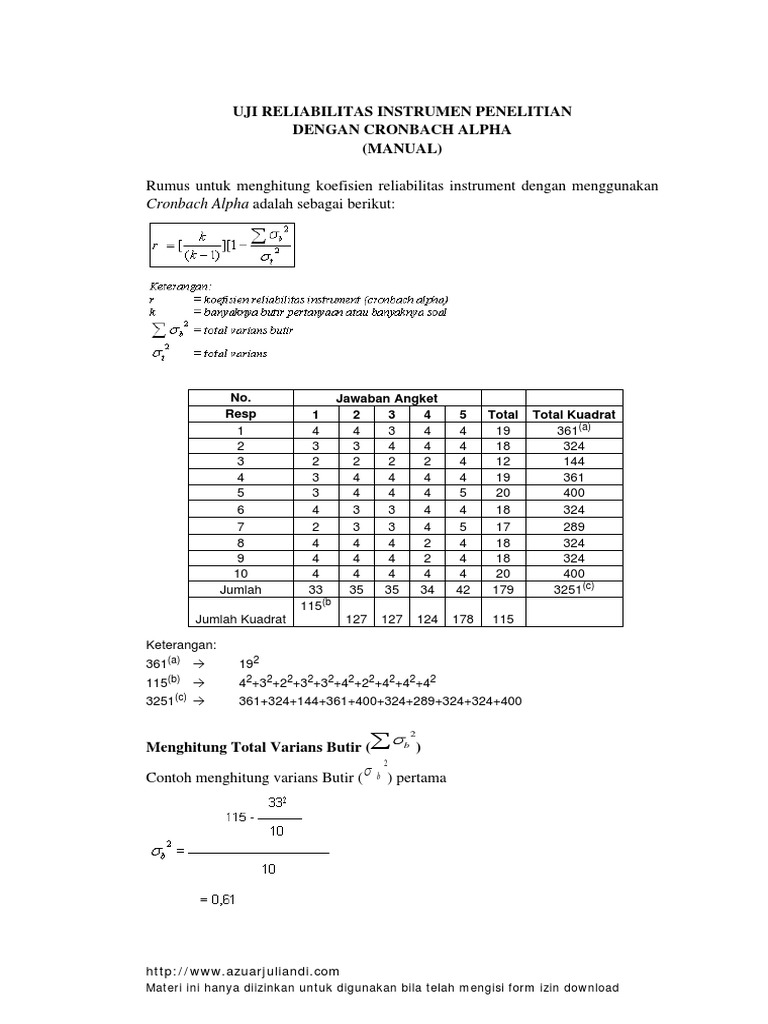Catatan Kuliah Metode Penelitian Kuantitatif Uji Reliabilitas Instrumen Dengan Metode Alpha Cronbach