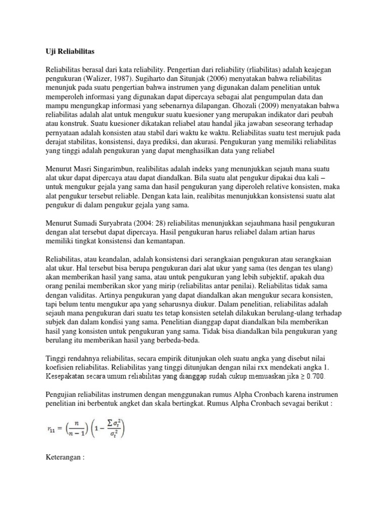 Uji Reliabilitas Data Dengan Spss Konsistensi