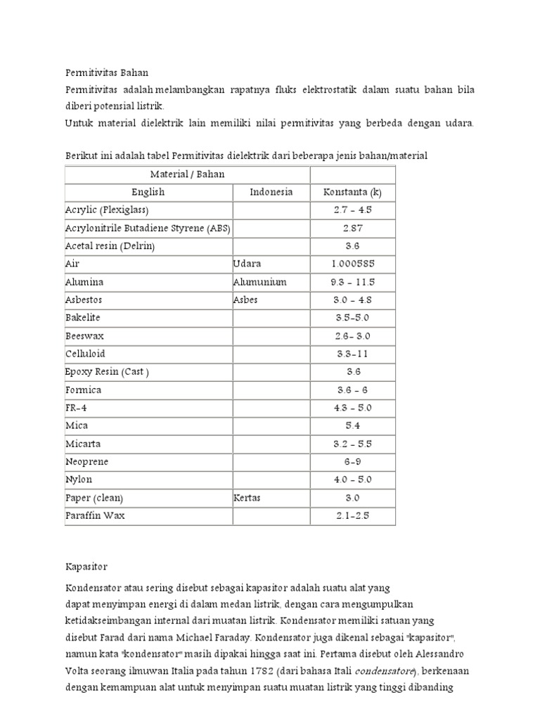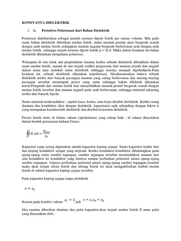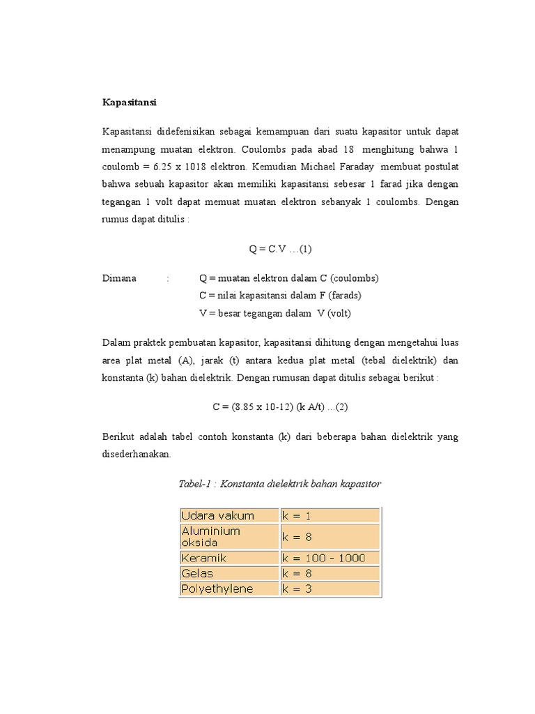 Viewkapasitor Adalah Komponen Elektronika Yang Dapat Menyimpan Muatan Listrik Struktur Sebuah Kapasitor Terbuat Dari 2 Buah Plat Metal Yang Dipisahkan Oleh Suatu Bahan Dielektrik Bahan Bahan Dielektrik Yang Umum Dikenal Doc Document